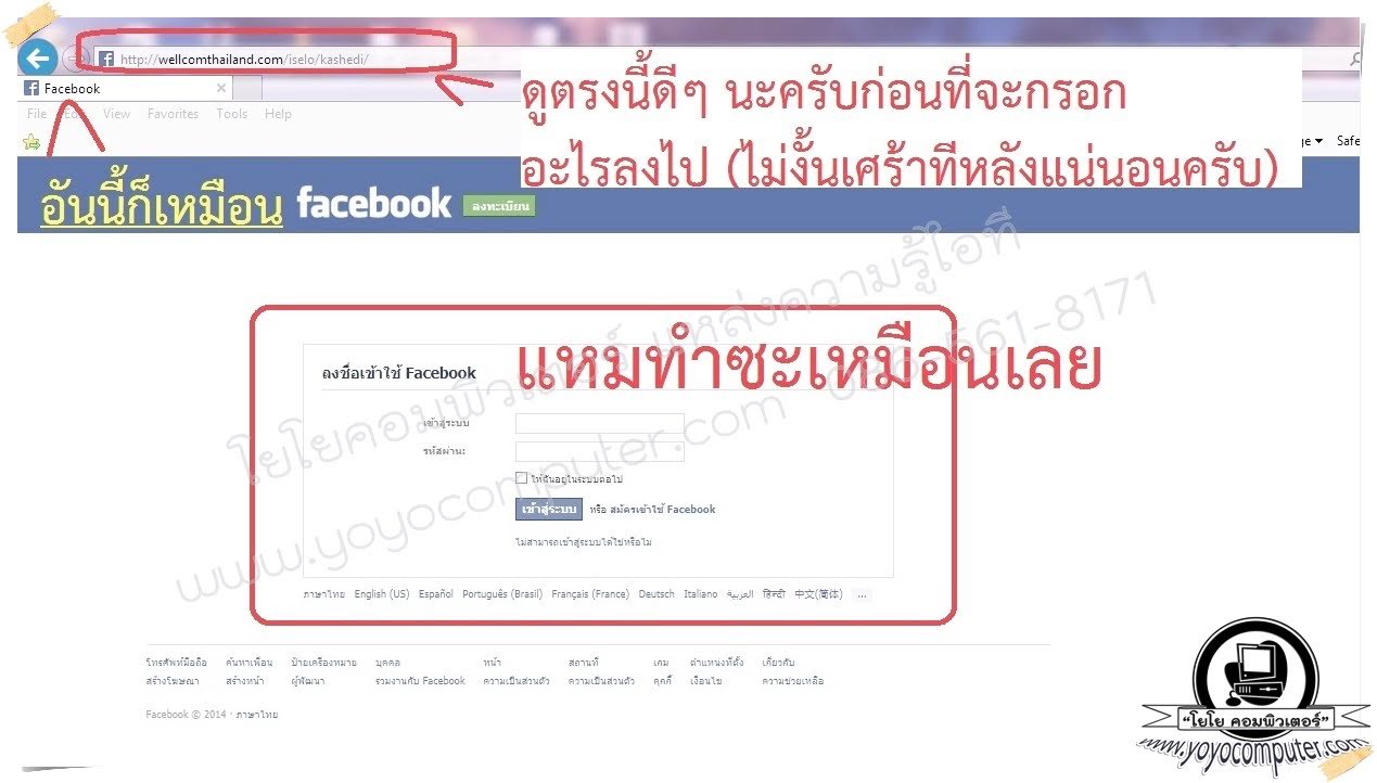 - มิจฉาชีพ สร้างเว็บปลอม หน้าตาเหมือน Facebook เป๊ะ